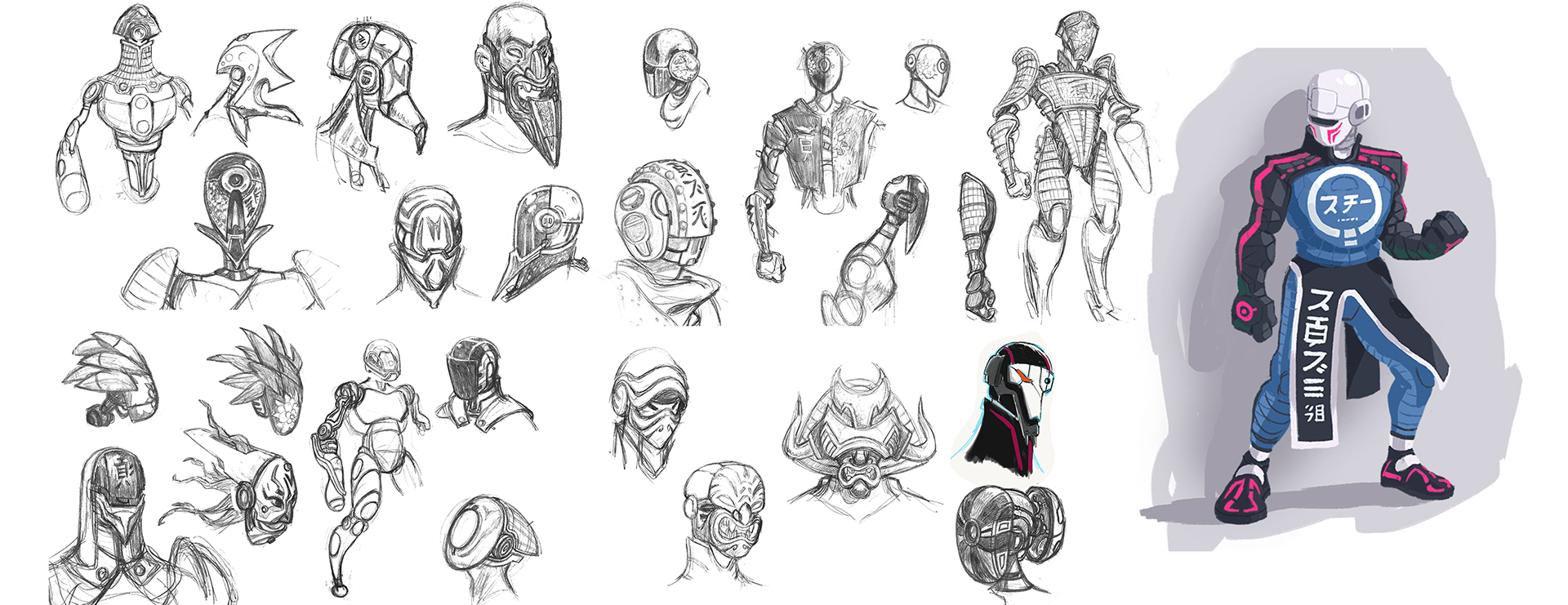 FIGHTER HEAD CONCEPTS for earlier, more serious version of Smash